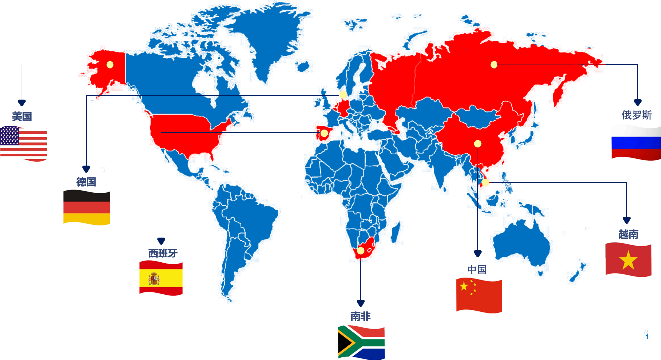 与德国、美国、西班牙、南非、俄罗斯、越南均有合作关系。
